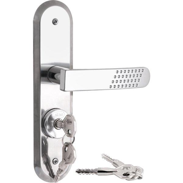 Possui acabamento cromado, proporcionando maior proteção contra oxidação. Conta com cilindro tetrachave, conferindo maior segurança.